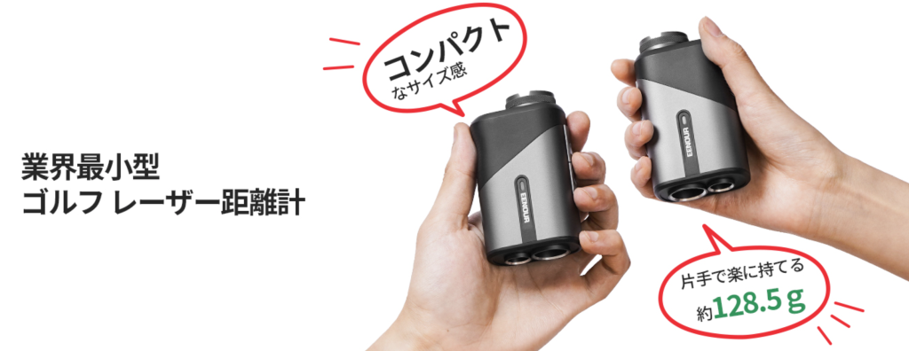 ゴルフ用レーザー距離計は多くのモデルが手のひらサイズでコンパクトビデオカメラほどの大きさですが、モデルや機能によって重さや大きさは異なります。重さは100~250gほどの間のものが多く、出来るだけ軽いものが持ち運びにも便利です。