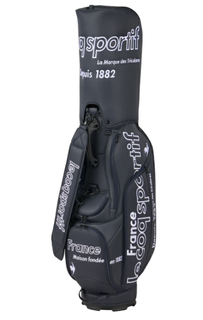 人気のスポーツブランドルコックスポルティフ。落ち着いた印象のキャディバッグは長く使っても飽きの来ないデザインで人気です。大胆なロゴが印象的で、合成皮革の高級感はありながらも軽量で使いやすさにもこだわっています。