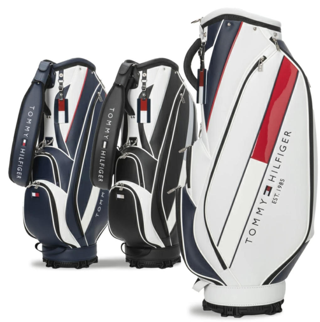 トミーヒルフィガーのブランドイメージをそのまま落とし込んだデザインがベーシックでおしゃれなキャディバッグ。シンプルだからこそ長く使えるデザインで、軽量シボ合皮を使用しているので軽くて使いやすいのが良いですね。洗練された清潔感のある印象のキャディバッグは、ゴルフウエアとのコーデも相性◎。