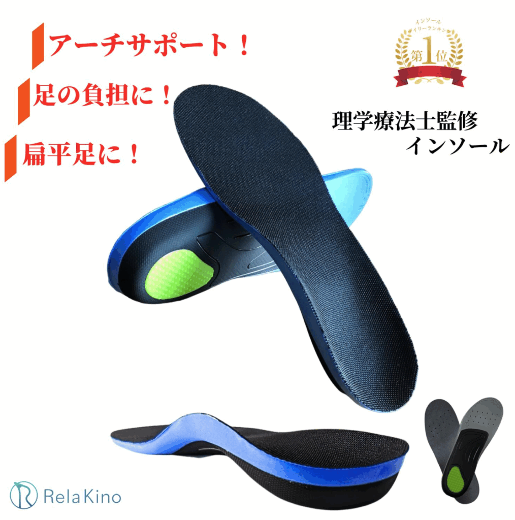理学療法士が監修したRela Kinoのインソール。高めのアーチ設計でフィット感にこだわっています。2種類の衝撃吸収素材でクッション性が高く、スイングや歩行を安定させてくれます。かかとにはジェル素材で衝撃吸収をするのでスイングなどの負担が軽減します。蒸れ防止や抗菌防臭など快適なプレーをサポートします。