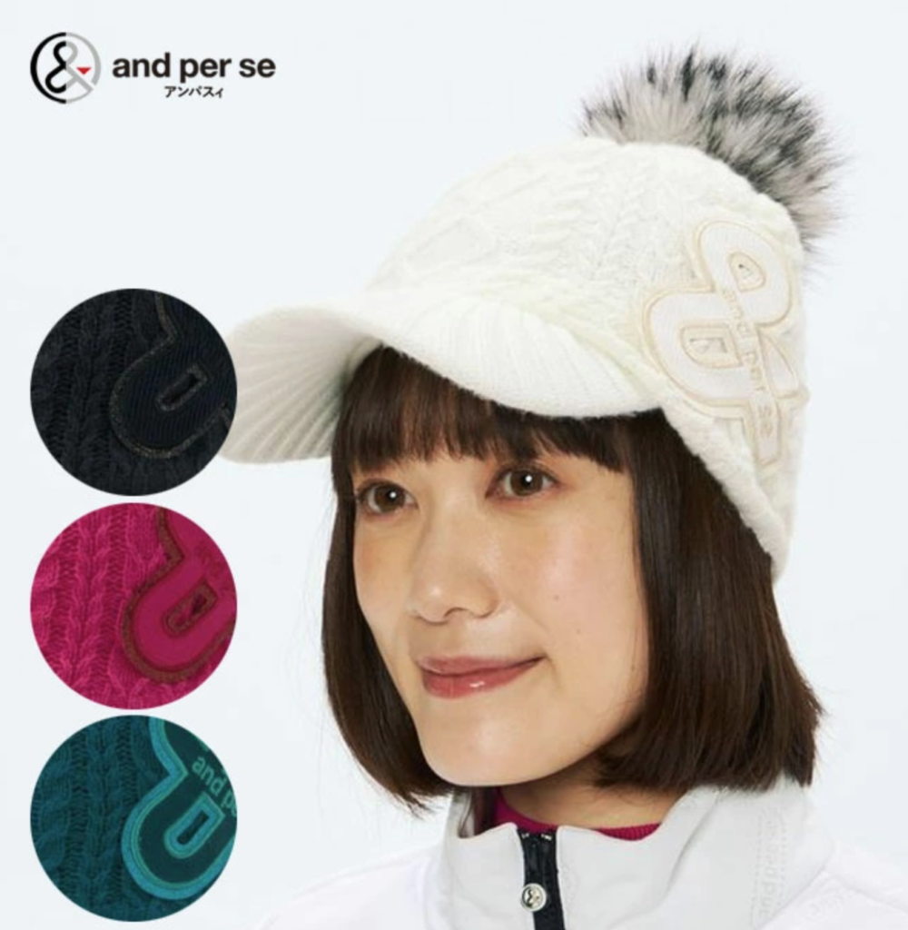 大きなロゴマークが印象的なアンパスィゴルフのニットキャップ。カジュアルでかわいいニット帽は冬の寒さをしのぐのにぴったり。裏面はフリース素材で暖かく、シンプルなウエアにも帽子でポイントをプラスできるアイテムです。